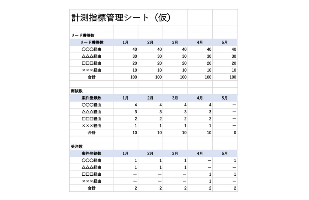 必要だとわかった受注数、商談数、リード数に関しては、それぞれKPIとして設定していただくのが良いと思います。