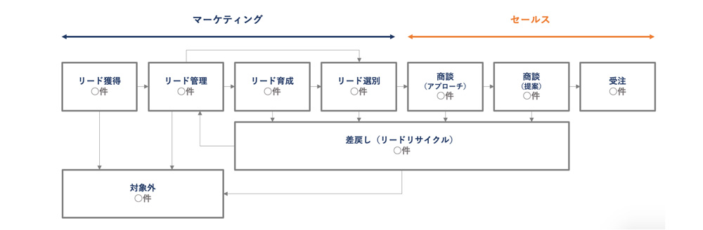 まずは、売上目標達成のために必要なリード数、商談数、受注数などを把握し、現状のままで達成できるのか、できない場合にはどのような対策をとるべきなのか、数値を元に関係者で議論できるようにしていきましょう。