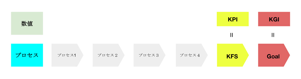 つまり、KFSはゴールを達成するために最重要な「プロセス」そのものを指し、KPIはKFSとするプロセスにおける目標の「数値」を指します。