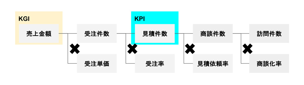 達成あるいは未達している場合、KPI構造の中のどの要素(=プロセス)が影響しているのかを分解して確認しましょう。