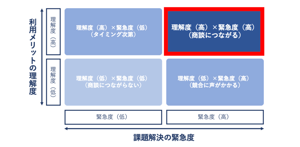 利用メリットの理解度(高)×課題解決の必要性(高)へ促そう