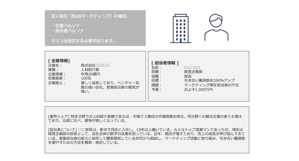 ペルソナに関しては、別記事「ペルソナ設定とは?BtoBマーケティングにおけるペルソナ設定と活用のコツ」に詳しくまとめております。合わせてご覧ください