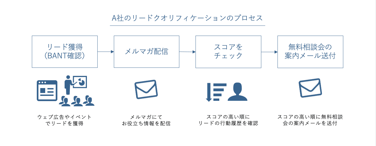 A社が実際に構築したリードクオリフィケーションの仕組みは、以下になります。