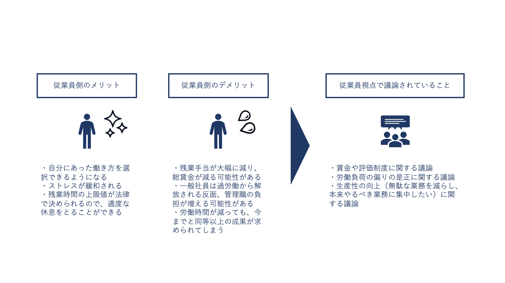 ・一般社員は過労働から解放される反面、管理職の負担が増える可能性がある