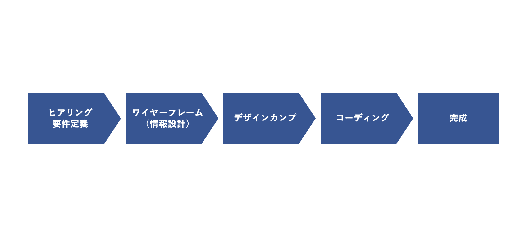 次に、Webサイト制作の流れについてご紹介します。Webサイトの制作の流れは、一般的に大きく5つのプロセスに分かれています。