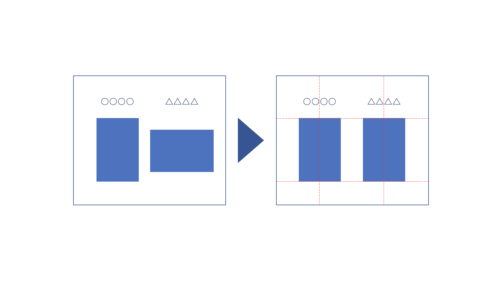 整列とは、文字や図形の位置を一つのライン上に整えることや、同じグループの要素の配置を揃えることです。読み手からしても、読みやすく美しく見えるようになります。
