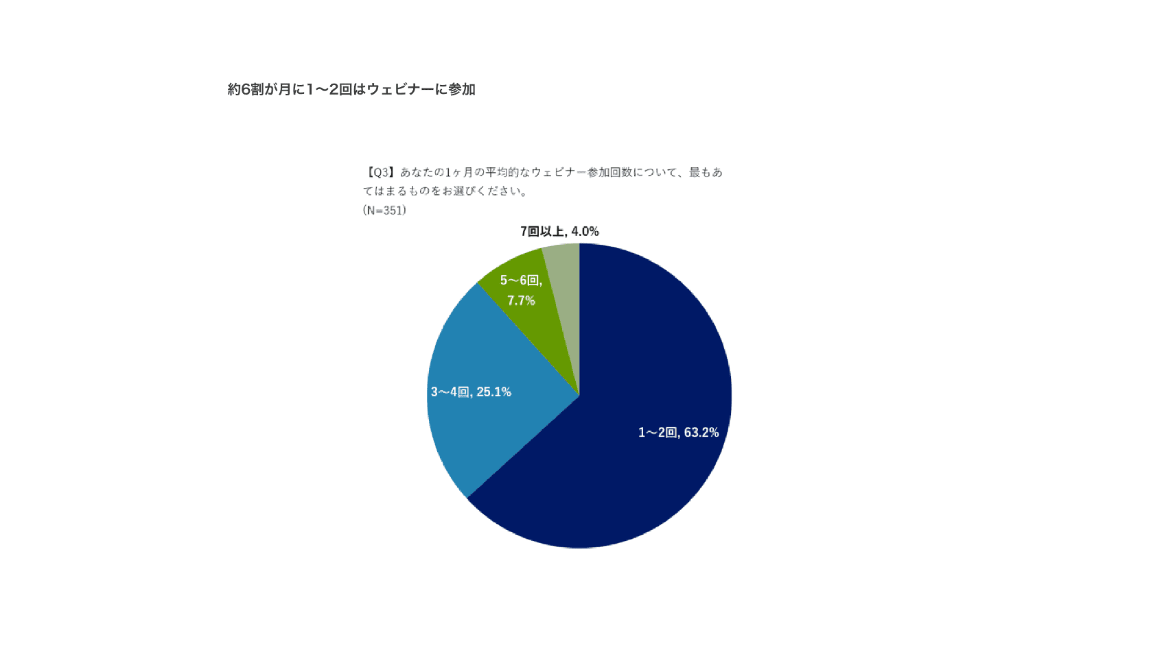 また、同調査では、ウェビナーに参加する1ヶ月あたりの平均的な頻度としては、約6割が月に1~2回はウェビナーに参加しているともあります。